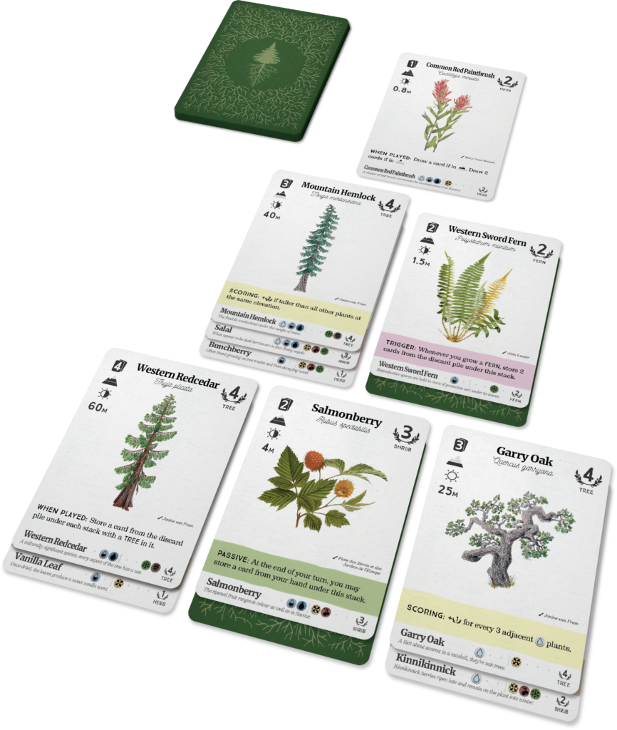 Ogni pianta introdotta ti fa guadagnare punti e contribuisce a un ecosistema crescente di abilità interconnesse. Alla fine di ogni round (quando il mazzo delle piante è svuotato), una carta visitatore animale verrà guadagnata dal giocatore le cui piante corrispondono meglio alle preferenze dell'habitat del visitatore (la maggior parte dei fiori/frutta/ecc.).