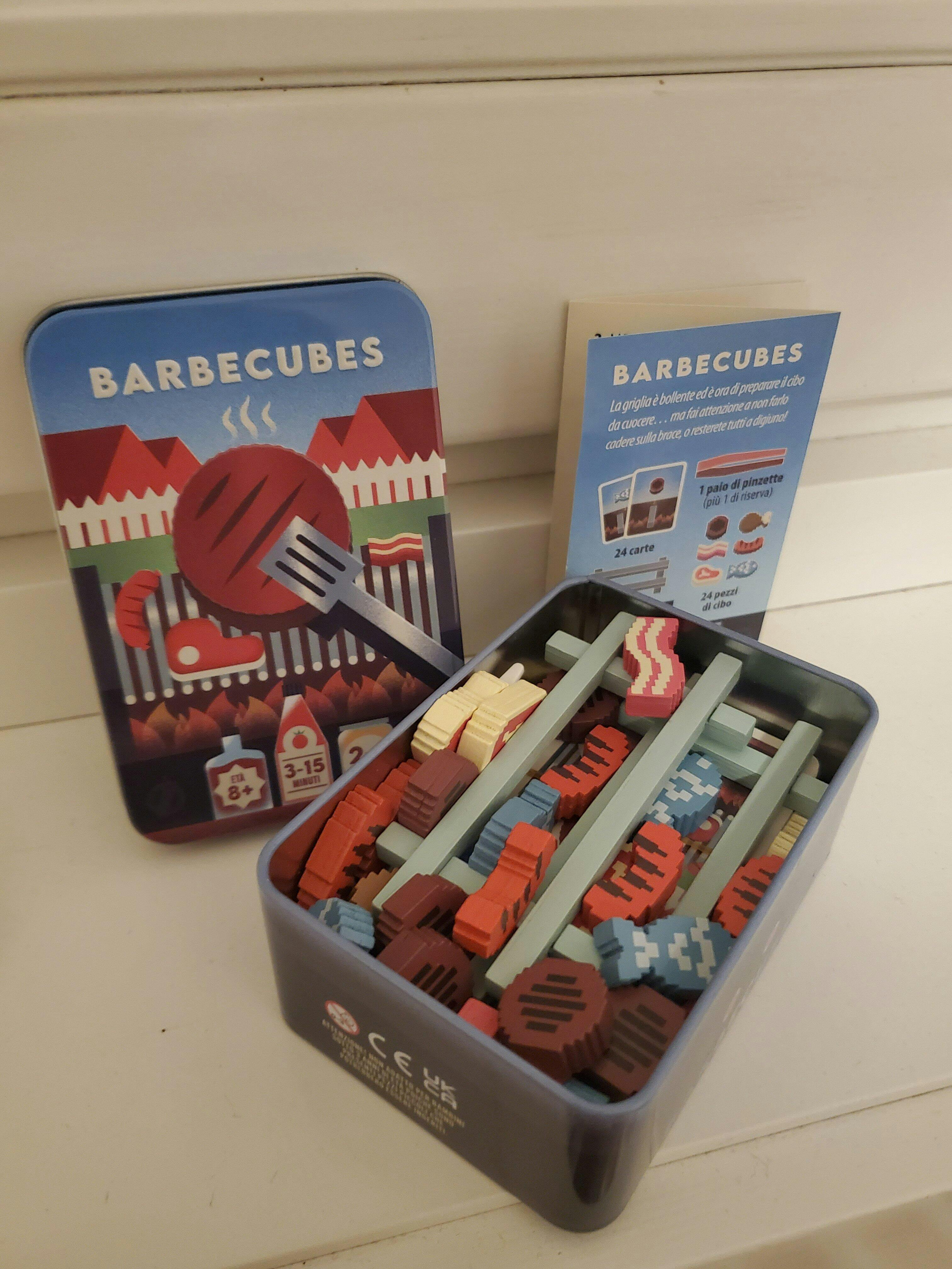 La griglia è bollente… e i tuoi riflessi lo saranno ancora di più! Barbecubes è un gioco di destrezza ad alto tasso di tensione dove equilibrio, abilità e colpi di scena sono sempre pronti a servire. A ogni turno, pesca una carta, afferra il pezzo di cibo indicato con le pinzette e posizionalo sulla griglia 3D. Ma attenzione: se qualcosa cade nella brace, potresti essere eliminato!