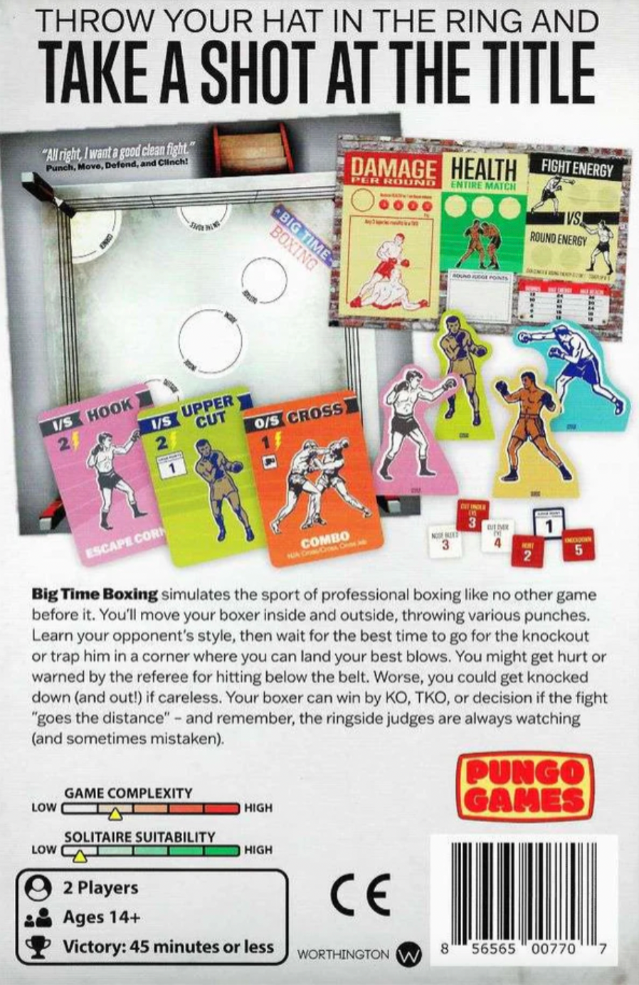 Big Time Boxing simula il pugilato professionistico come nessun altro gioco prima d'ora. Muovi il tuo pugile dentro e fuori, sferrando una varietà di pugni e combinazioni. Impara lo stile del tuo avversario, poi aspetta il momento migliore per tentare il KO o intrappolarlo in un angolo. Potresti farti male o essere ammonito dall'arbitro per aver colpito sotto la cintura. Peggio ancora, potresti essere messo al tappeto (e messo fuori combattimento!) se sei distratto. Il tuo pugile può vincere per KO, KO tecnico o decisione se l'incontro "si protrae fino alla fine" – e ricorda, i giudici a bordo ring sono sempre a guardare (e a volte sbagliano).