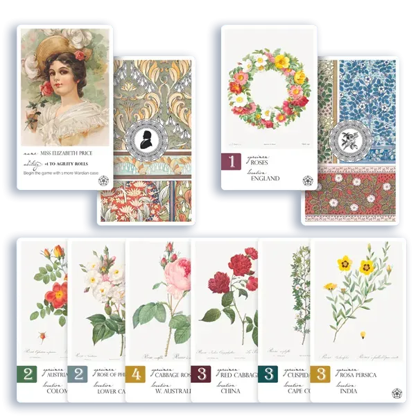 Botany – Rose Reali è una mini-espansione originariamente distribuita durante la campagna Kickstarter del gioco base. Introduce una nuova collezione di splendide rose vittoriane e un personaggio inedito che arricchiscono l’esperienza botanica con grazia e raffinatezza.
