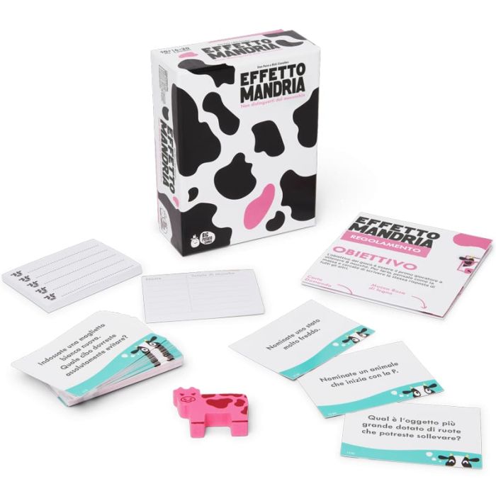 Ogni turno inizia con una domanda curiosa e imprevedibile. I giocatori scrivono segretamente la propria risposta, cercando di intuire cosa diranno gli altri. Chi ha scelto l’opzione più condivisa ottiene punti sotto forma di mucche e avanza verso la vittoria. Attenti alla Mucca Rosa! Se la vostra risposta è l’unica o la più fuori dal coro, riceverete la temuta Mucca Rosa: finché la possedete, la vostra mandria non varrà nulla.