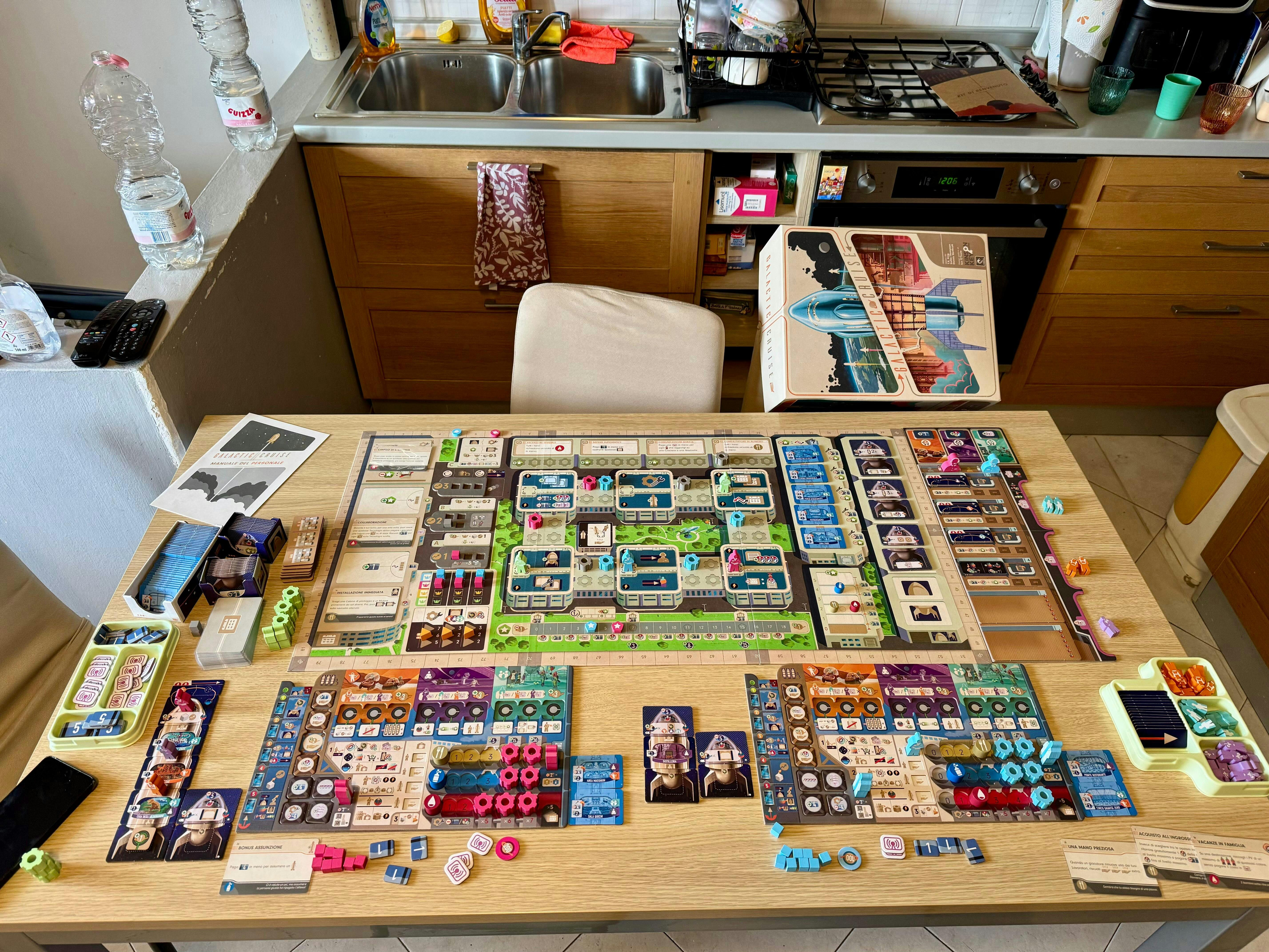 Al vostro turno potrete piazzare un lavoratore per compiere due azioni nella rete in continua espansione, lanciare una navetta e inviare uno dei vostri lavoratori nello spazio come pilota, oppure richiamare tutti i vostri lavoratori terrestri per raccogliere bonus di finanziamento. Le azioni comprendono l'acquisizione di progetti, la costruzione di navette, l'attrazione di ospiti e la realizzazione di connessioni tra le località che aumentano la selezione delle azioni nel corso del gioco. Inoltre, influirete sui mercati delle risorse che si muovono in base alle azioni di tutti i giocatori.