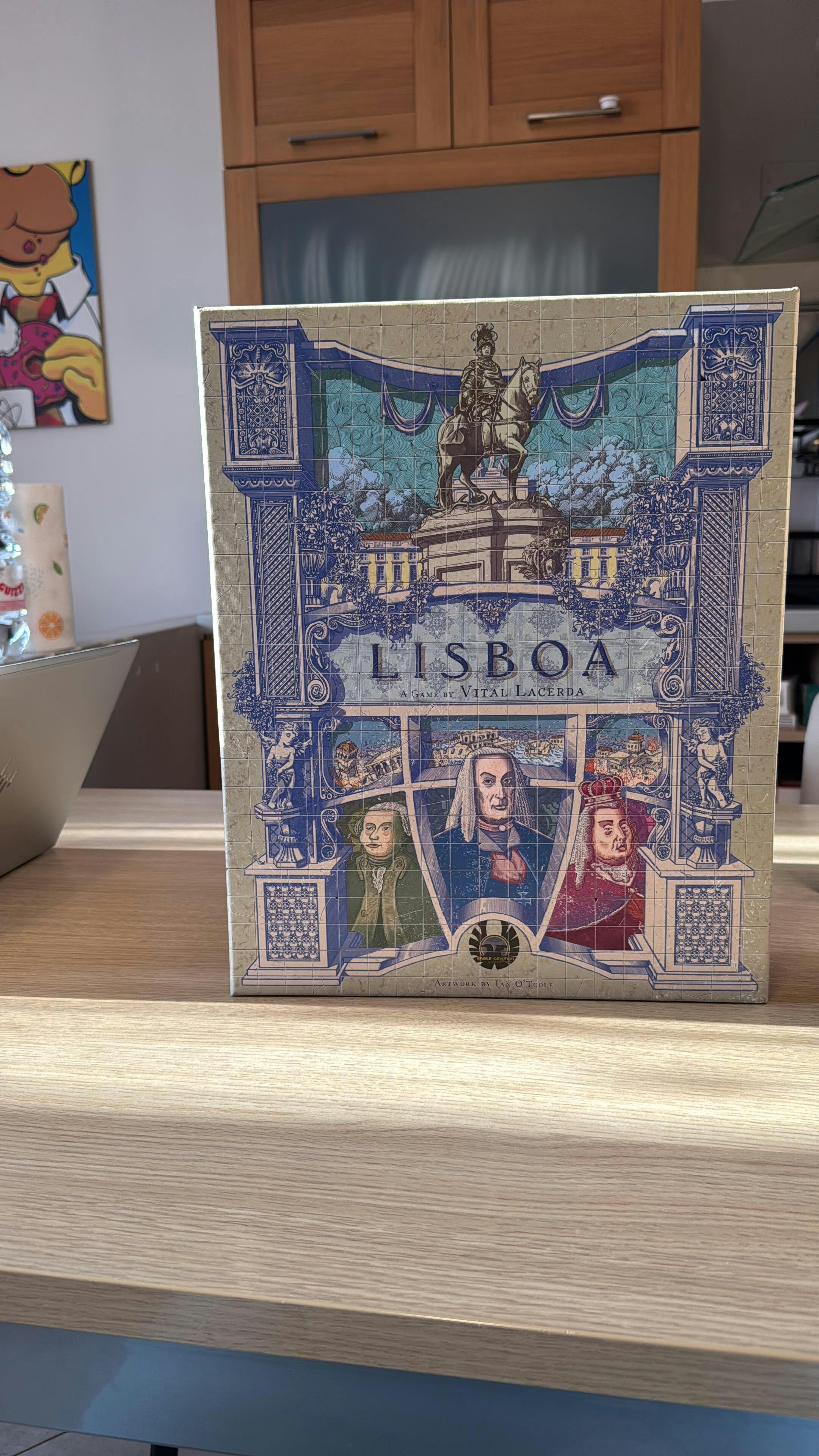 Lisboa è un gioco per 2-4 giocatori di Vital Lacerda. Qui è in vendita la versione Inglese Deluxe, detta anche l'edizione "King's Favorite", che include anche tutte le migliorie sbloccate nella campagna di crowdfunding.