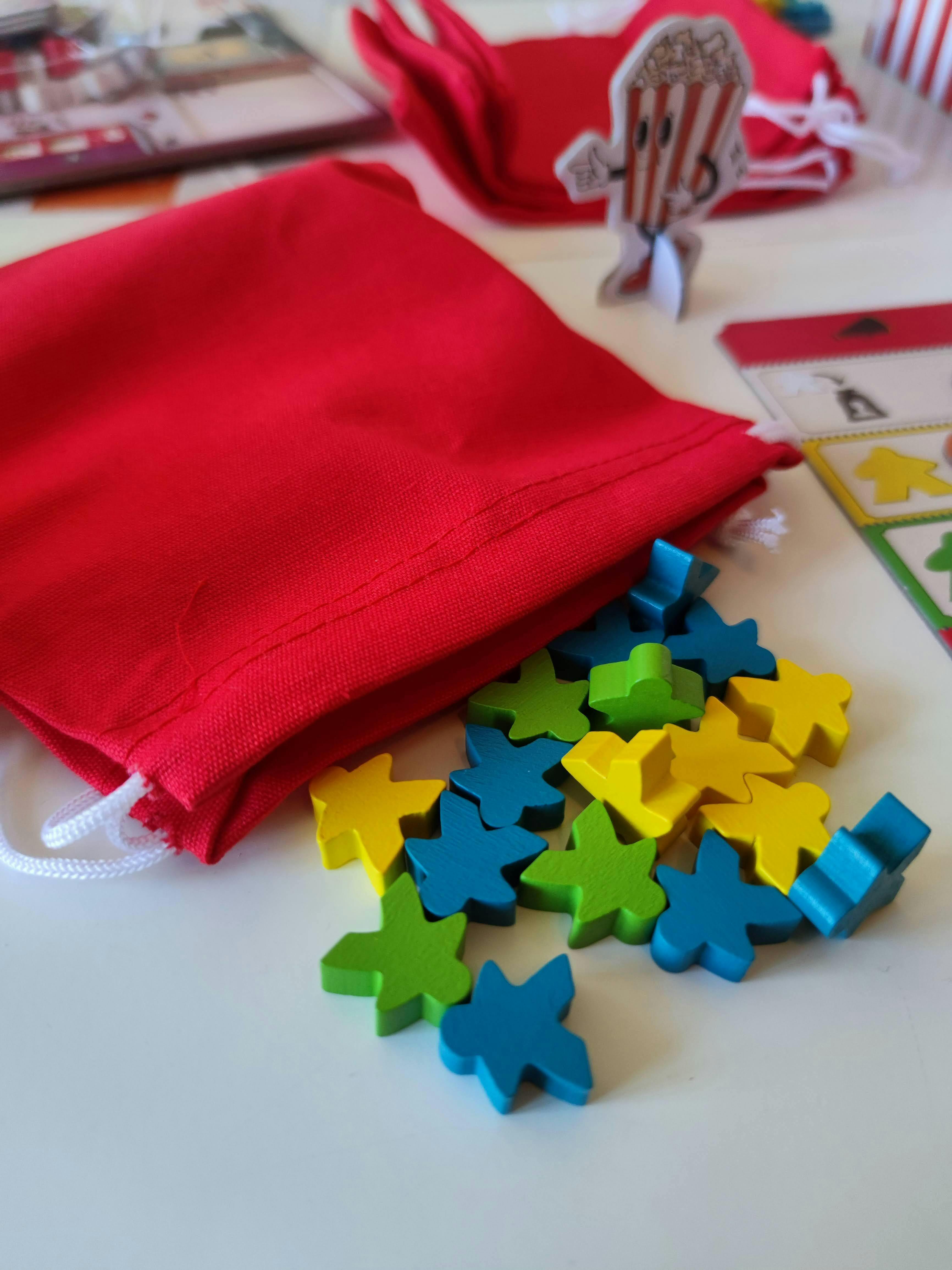 Il gioco Popcorn invece è un simpaticissimo introduttivo ben strutturato con meccaniche di bag building, piazzamento lavoratori ed obiettivi. Nonostante sia un eurogame ha un tema molto ben sentito e implementato, corredato anche da una componentistica molto curata tra i suoi film ad hoc (rivisitazioni di film originali come Batman o Top Gun che diventano "Badman" ad "Elite Pilot"). Sfiziosi anche i contenitori porta popcorn (i punti del gioco).