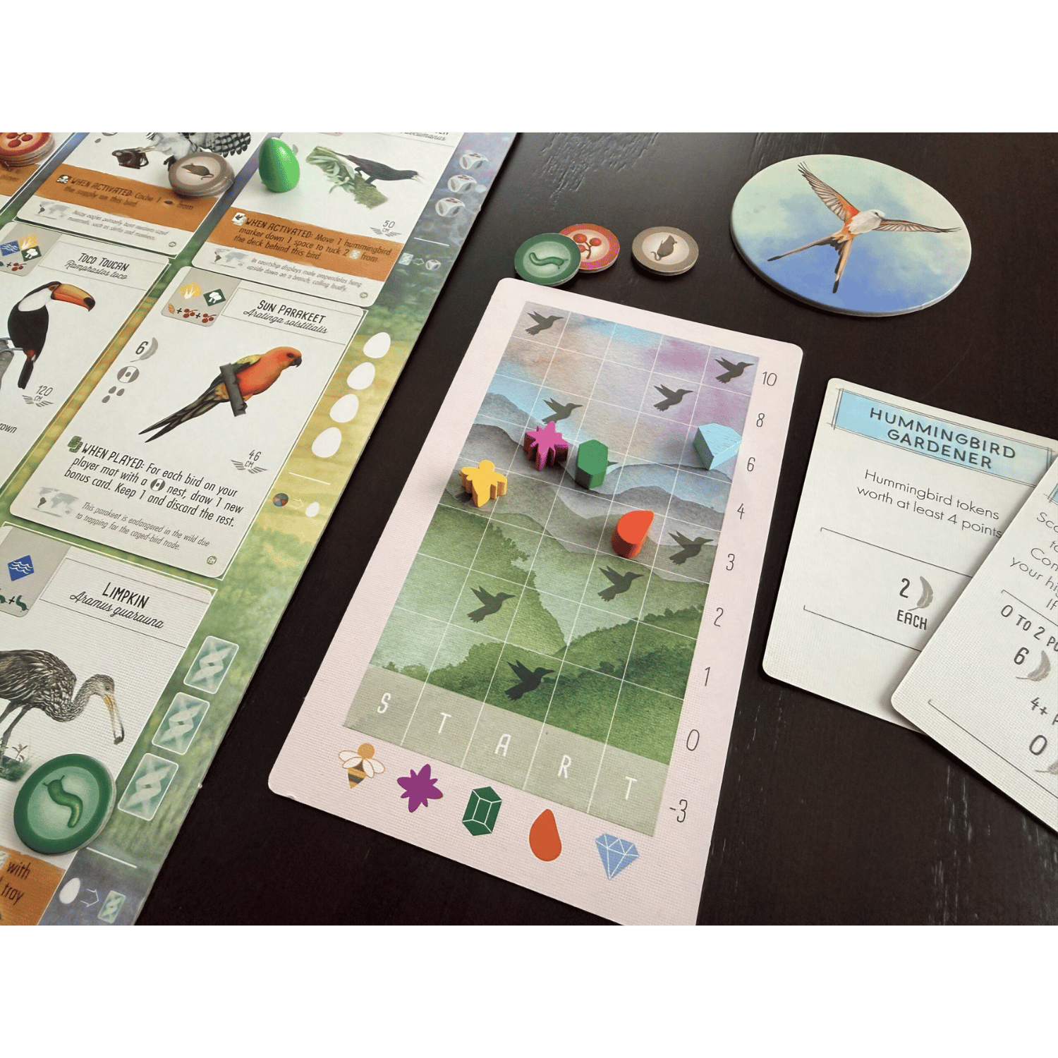 I colibrì costituiscono circa un decimo delle specie di uccelli dell'America Latina, deliziando gli amanti degli uccelli con i loro movimenti rapidi e le piume scintillanti. La designer Elizabeth Hargrave e le artiste Natalia Rojas, Ana Maria Martinez Jaramillo e Martha Clare li mettono in risalto in questa espansione con un nuovo tipo di carta che aggiunge un tocco di novità al gameplay.